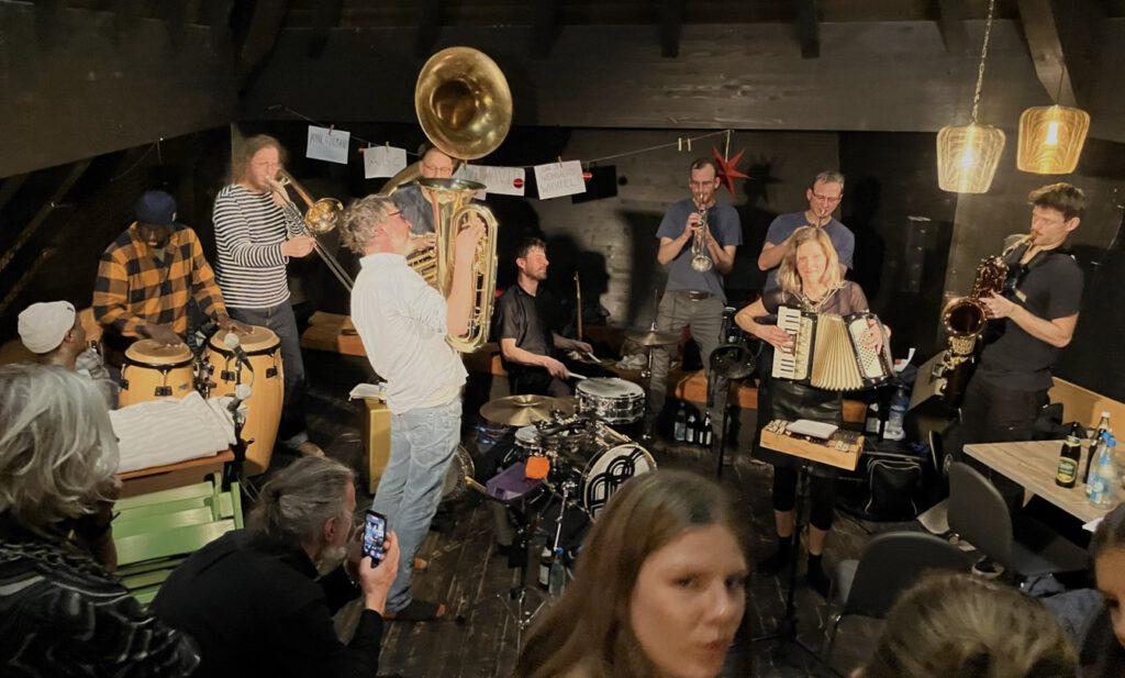 Die Offene Bühne am 12.12.25 war ein voller Erfolg: volle Bude, voll was auf die Ohren (mit dem ABC Anarchist Brass Collective aus Regenburg) und voll gute Stimmung!